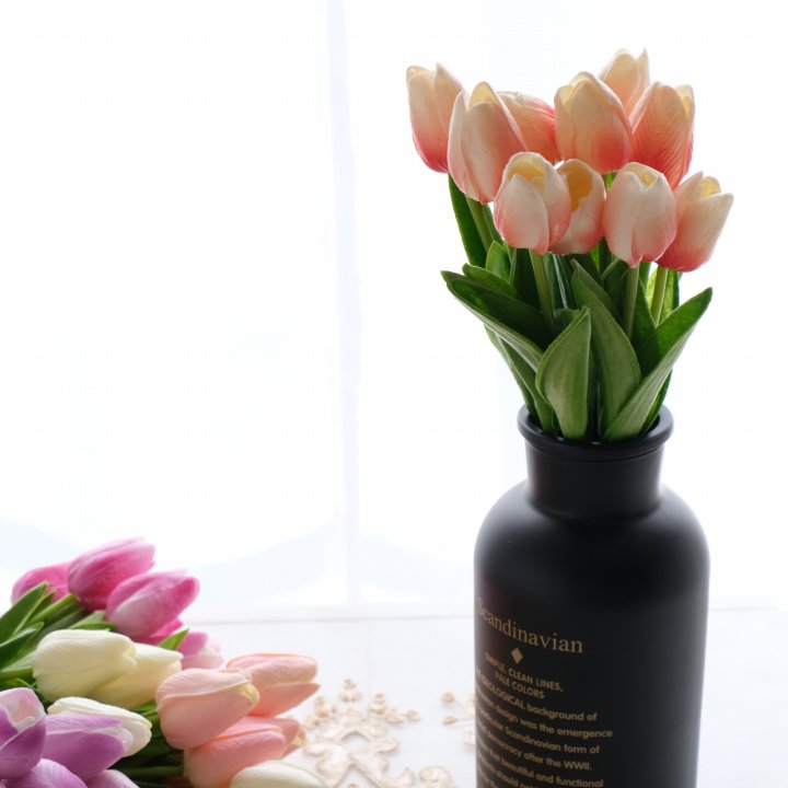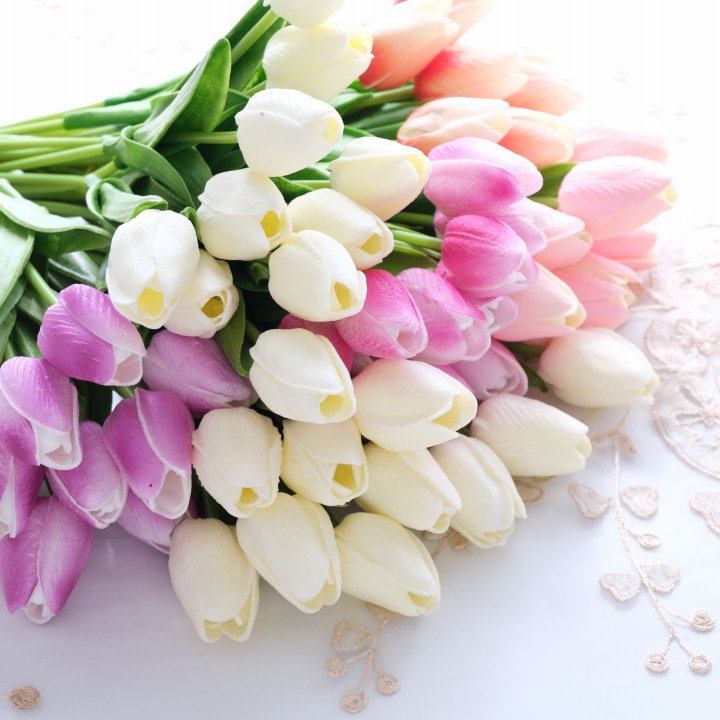 リアルな質感のチューリップが10本で束になっているので、ボリュームがあり綺麗です。
