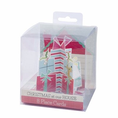 イギリスTalking Tablesブランド。 CHRISTMAS AT OUR HOUSE シリーズのプレイスカード。 ギフトボックス型のプレイスカードで、組み立ててリボンでデコレーションします。 名前を書ける場所があります。