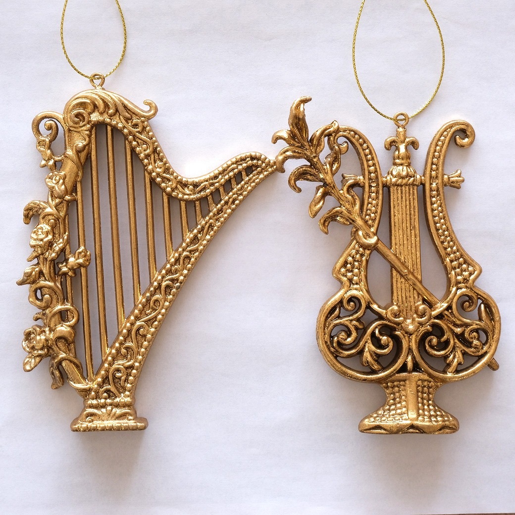 2個セット アンティークカルーセルホースオーナメント パールホワイト×ゴールド
