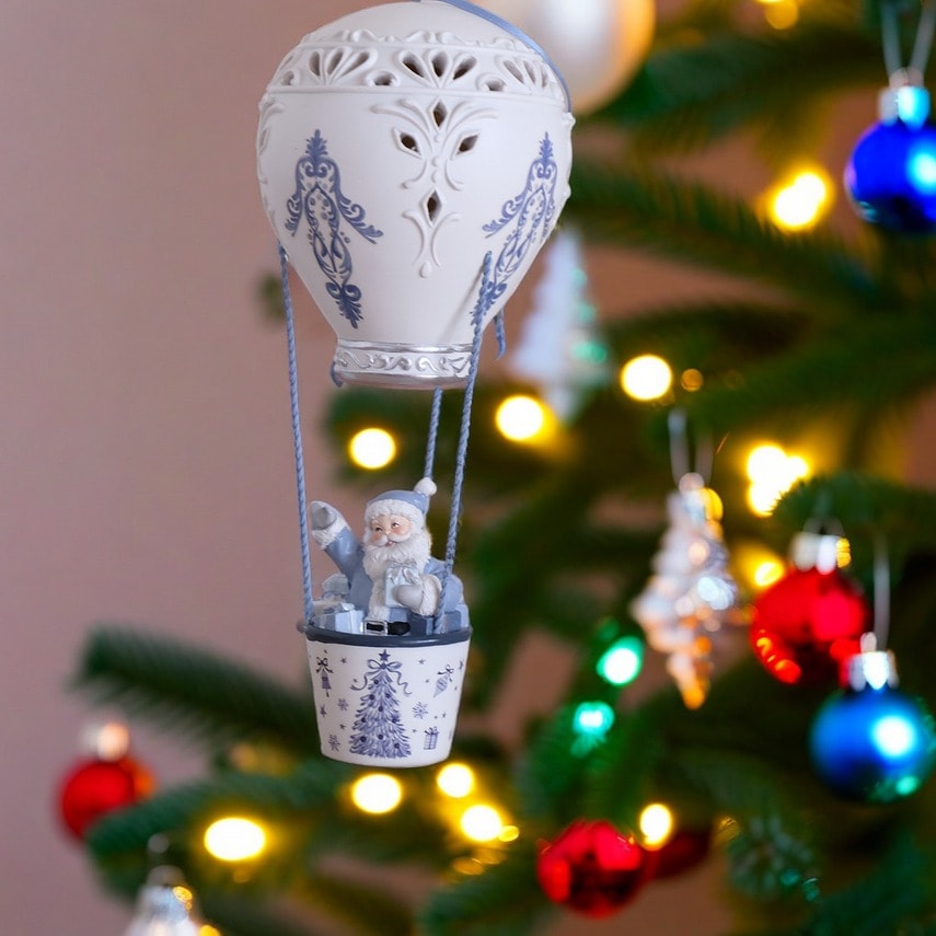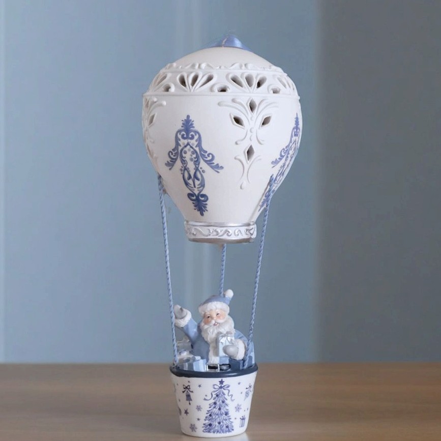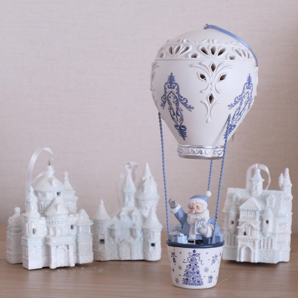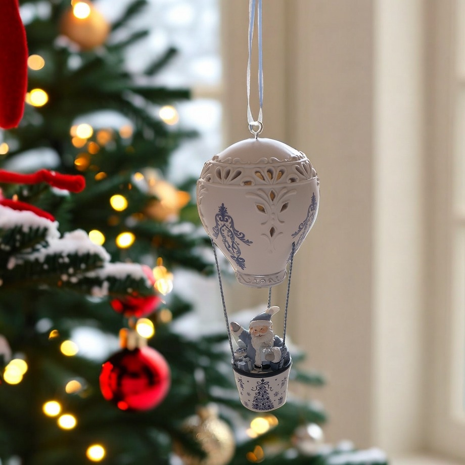美しくデザインされたこのオーナメントは、青い気球に乗ったサンタクロースが、あなたのクリスマスツリーやお部屋を華やかに演出します。目を引く色合いと愛らしいキャラクターが、見る人の心を癒してくれること間違いなしです。