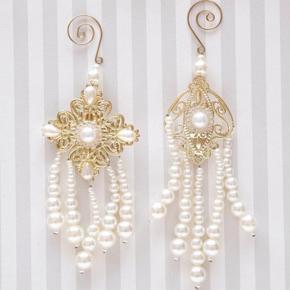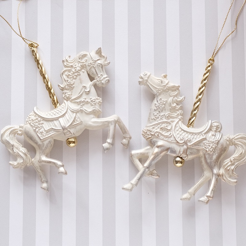 2個セット アンティークカルーセルホースオーナメント パールホワイト×ゴールド