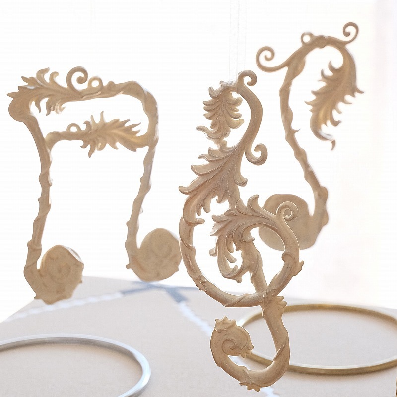 ト音記号や音符をモチーフに、細部まで繊細に造形された装飾は、まるでアンティークのような気品ある佇まい。