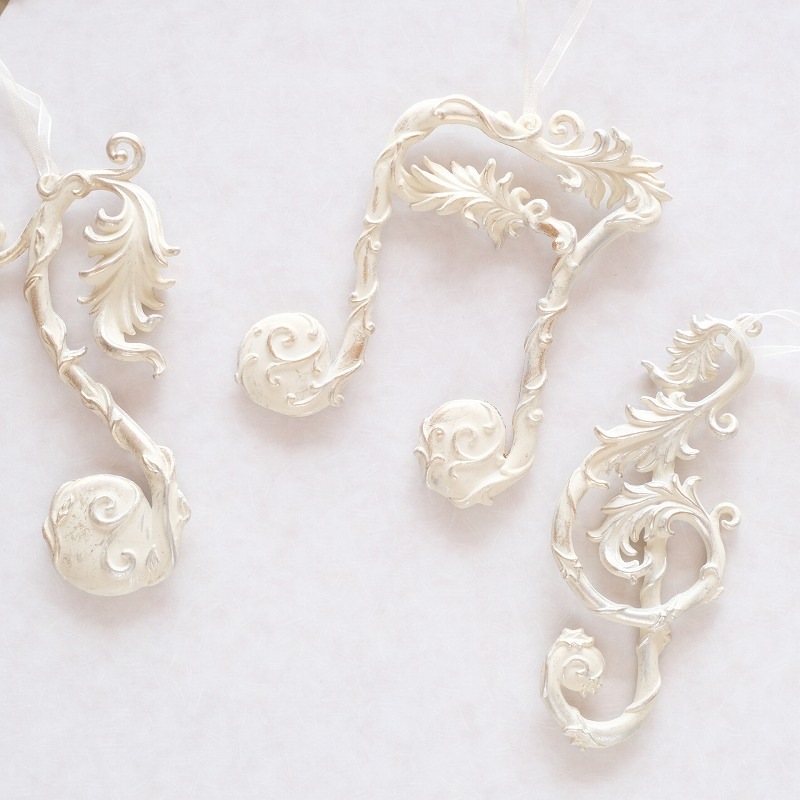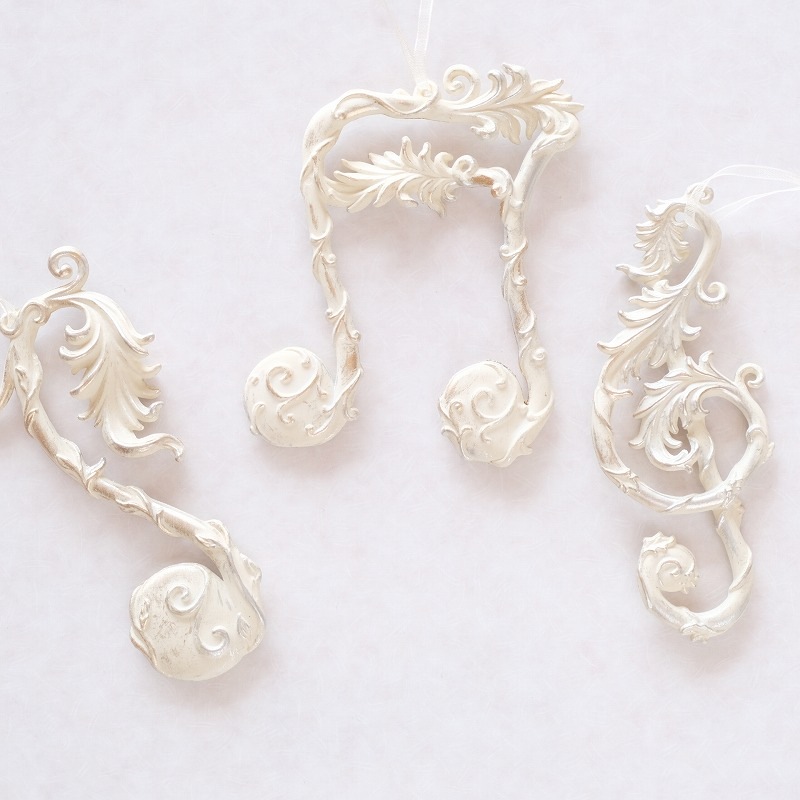 ◆◆3個セット 音符オーナメント アンティークホワイト◆◆