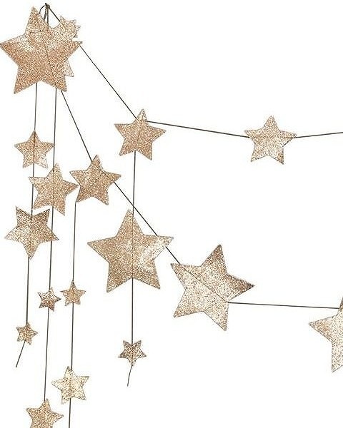 上品なゴールドの輝きが、子供部屋やリビング、パーティーシーンをやさしく彩る人気のデコレーションガーランドです。
