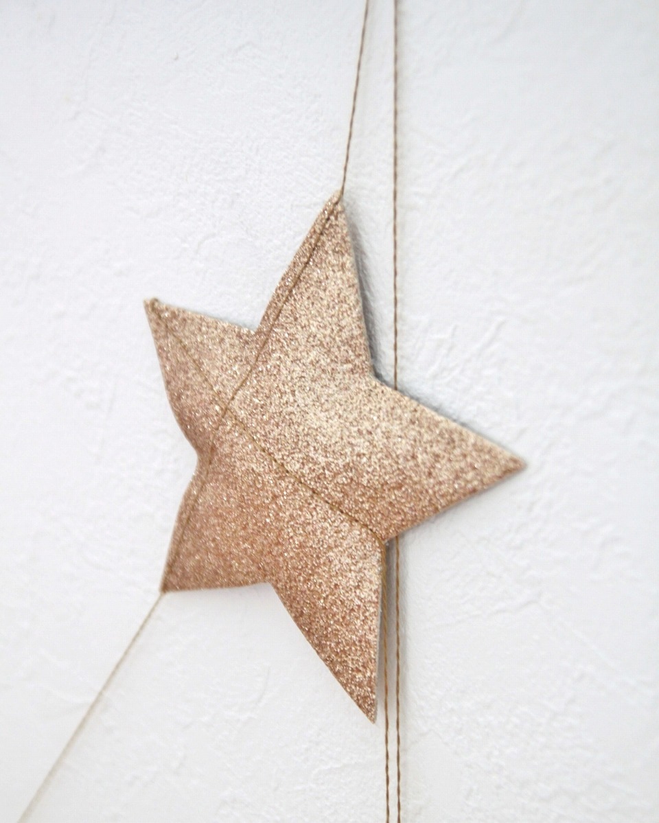 このガーランドの魅力は、星が平面ではなく、やわらかくカーブした立体的なフォルムで仕立てられていること。光を受けるたびに陰影が生まれ、奥行きのある美しい表情を演出します。