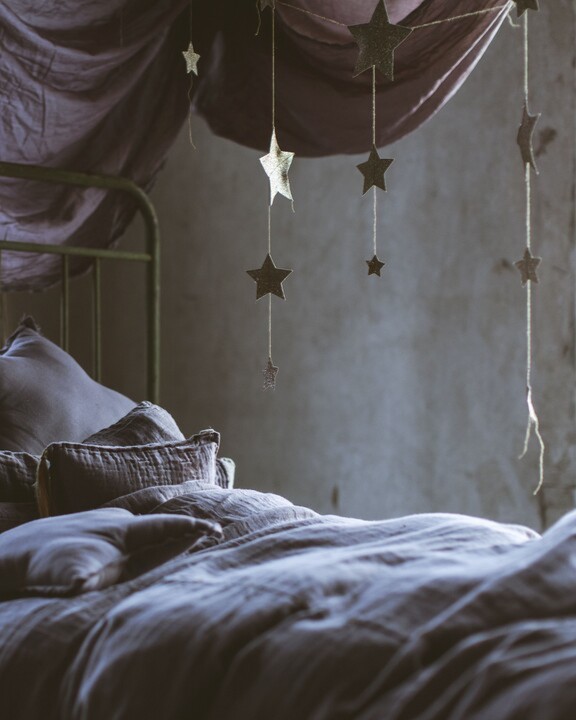 さらに、星の大きさや紐の長さがあえて均一ではないデザインも特徴。ランダムなバランスが自然なリズムを生み、飾ったときに動きと立体感が生まれます。壁や窓辺、ベッドキャノピーの周りに吊るすだけで、まるで本物の流れ星が空間を漂っているような、軽やかで幻想的な雰囲気に。