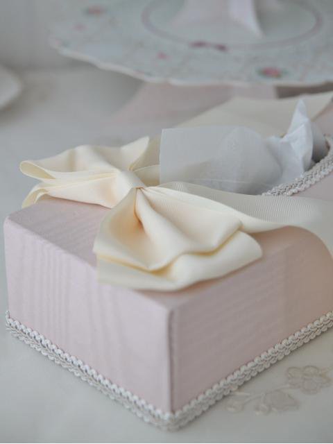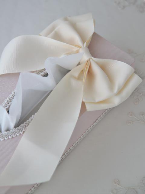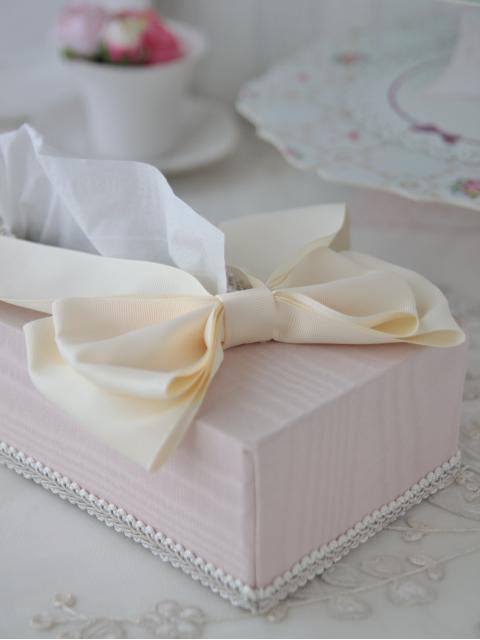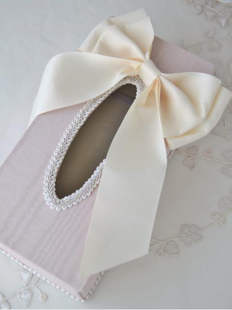 女性の心をくすぐるリボン使いエレガントで高級感の有るデザインのティッシュボックス。